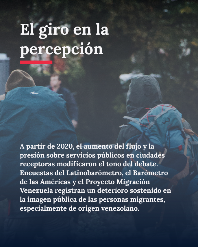 En el caso venezolano, la investigación revela cómo el cierre del Registro Único de Migrantes Venezolanos (RUMV) y las restricciones asociadas a los Permisos por Protección Temporal (PPT) han dejado a muchas personas en una situación de irregularidad sobrevenida. Varios testimonios dan cuenta de procesos truncos, documentos que nunca llegaron o inconsistencias entre bases de datos; lo que genera un efecto de exclusión múltiple, afectando el acceso a salud, educación y empleo.